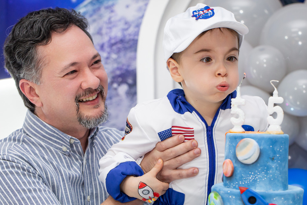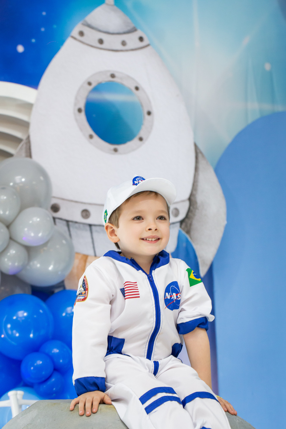O tema escolhido foi Astronauta, e a decoração incrível assinada pela equipe criativa da Raposo Festas nos levou direto para o espaço sideral. Cada detalhe parecia flutuar, com foguete pronto para decolar rumo à diversão.