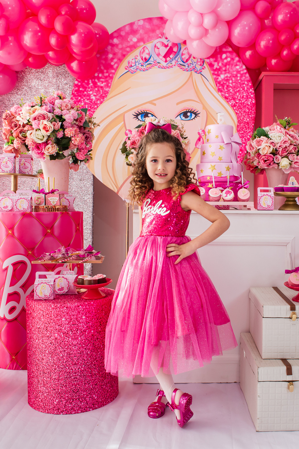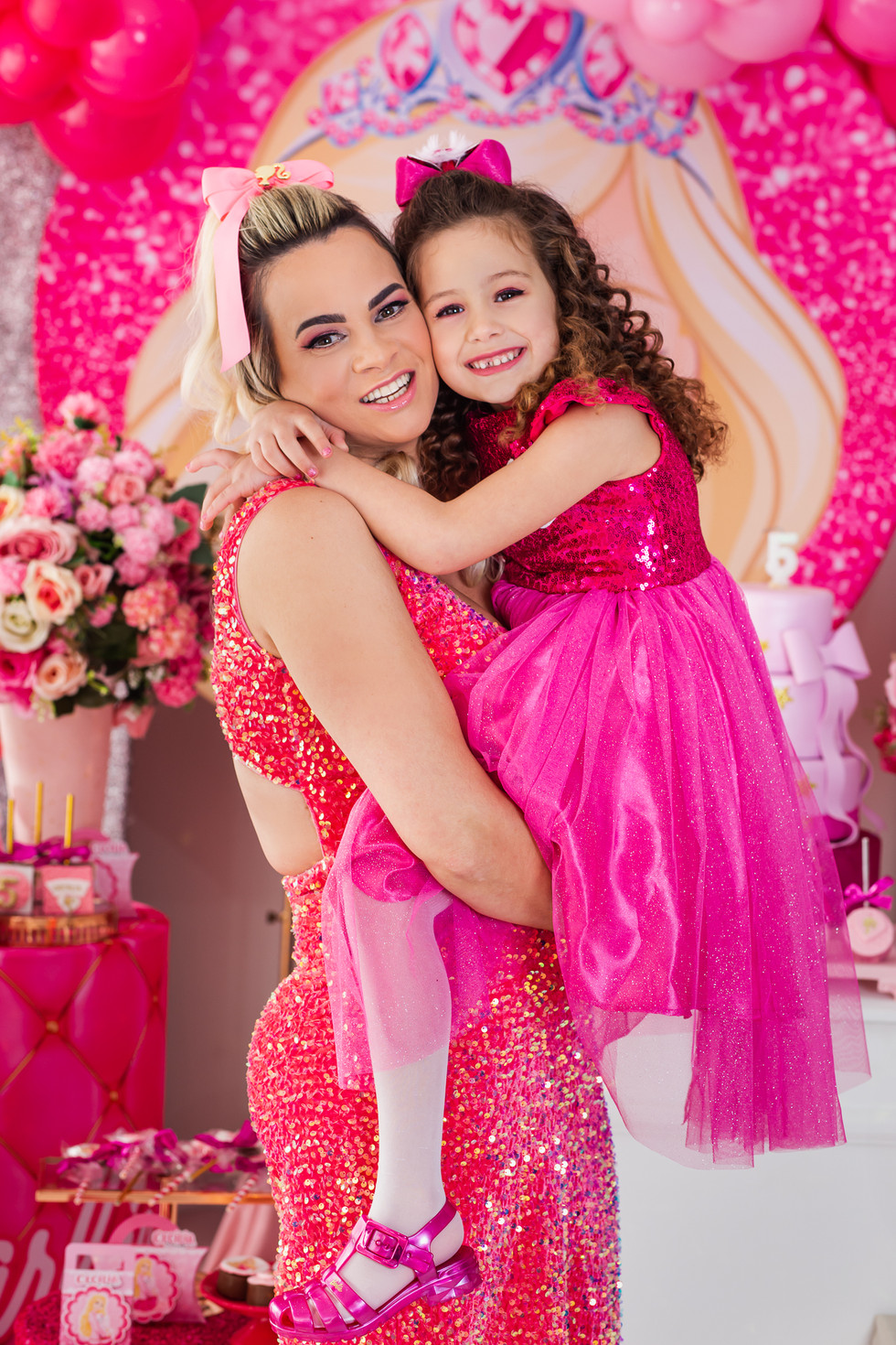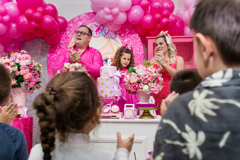 Sextouuuu com festa da Cecília por aqui! No último domingo ela comemorou seu quinto aniversário com uma festa maravilhosa no Ateliê dos Sonhos com o tema Barbie. E ela chegou toda vestida dentro da personagem! Aliás, não só ela! A mamãe também! Já o papai e o mano vieram vestidos na mesma paleta de cores. Um espetáculo a parte!