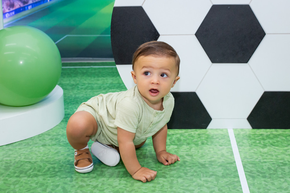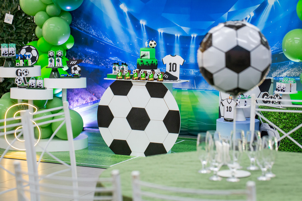A decoração remetia ao universo do futebol, criando o cenário perfeito para uma celebração animada e cheia de energia. E o aniversariante? Radiante, aproveitou cada momento, brincou e se divertiu intensamente, mostrando toda sua simpatia e entusiasmo.