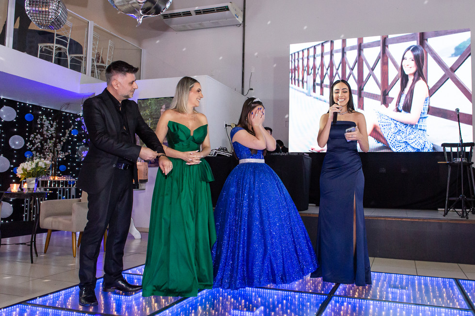 Foi dia de realizar sonho de princesa em uma noite mágica. Foi uma festa cheia de emoções! A mãe Enia e o pai Evandro fizeram de tudo para segurar as lágrimas, mas foi em vão! Impossível conter a emoção quando ela vem do coração.