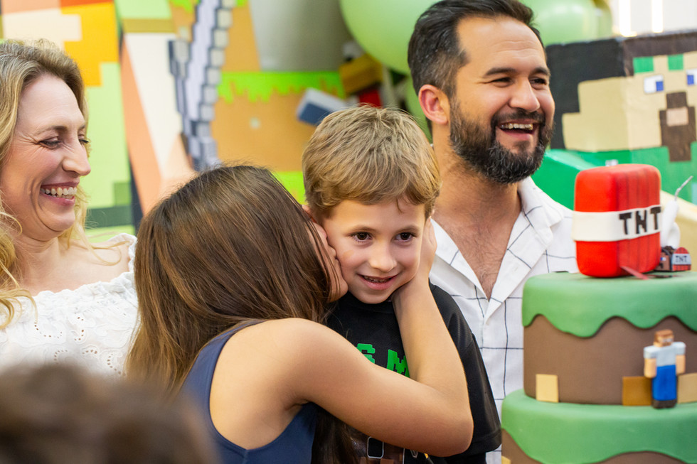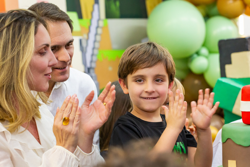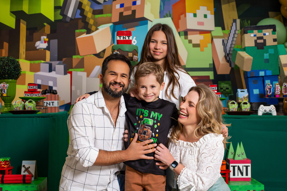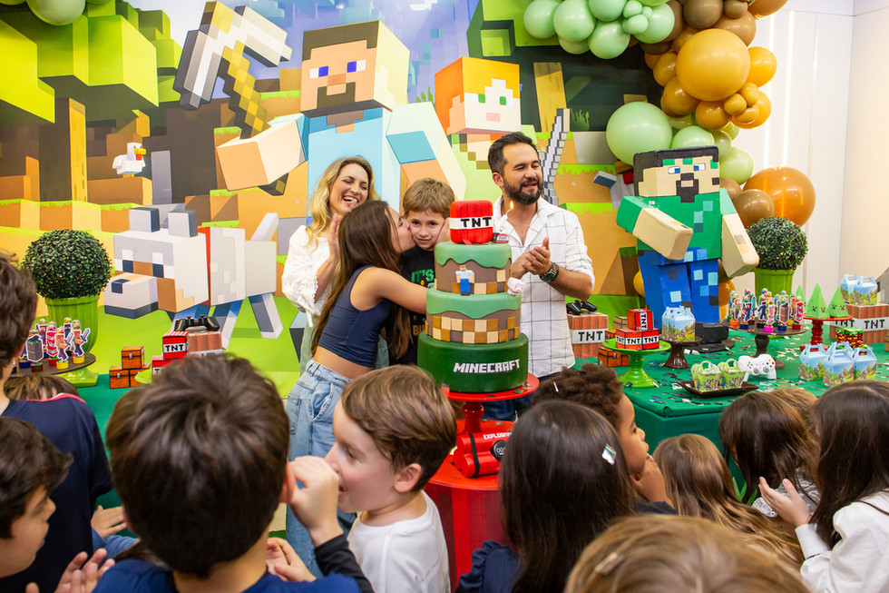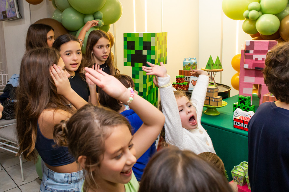 Com o tema Minecraft, a decoração transportou todos para um universo de criatividade e aventura. E o melhor: tudo isso foi vivido em conjunto, como uma verdadeira missão compartilhada.