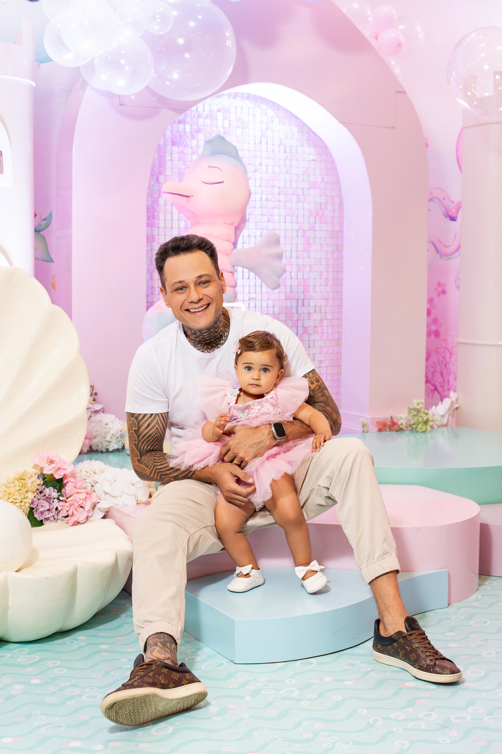 O tema escolhido foi Fundo do Mar, e a decoração assinada pela Fábrika de Festas estava simplesmente fantástica. Cada detalhe remetia ao universo marinho, com cores e elementos que encantaram todos os presentes. A produção ganhou ainda mais charme com os personalizados de Carlos Lima Personalizados e os doces modelados da Mel Zanetti, que completaram a atmosfera mágica.
