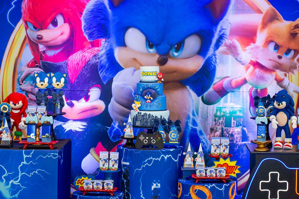 O espaço se transformou em um verdadeiro universo de aventura, repleto de detalhes vibrantes e coloridos que trouxeram o mundo do Sonic à vida. Cada canto estava cheio de elementos que remetiam ao famoso ouriço azul, criando um ambiente perfeito para a celebração.