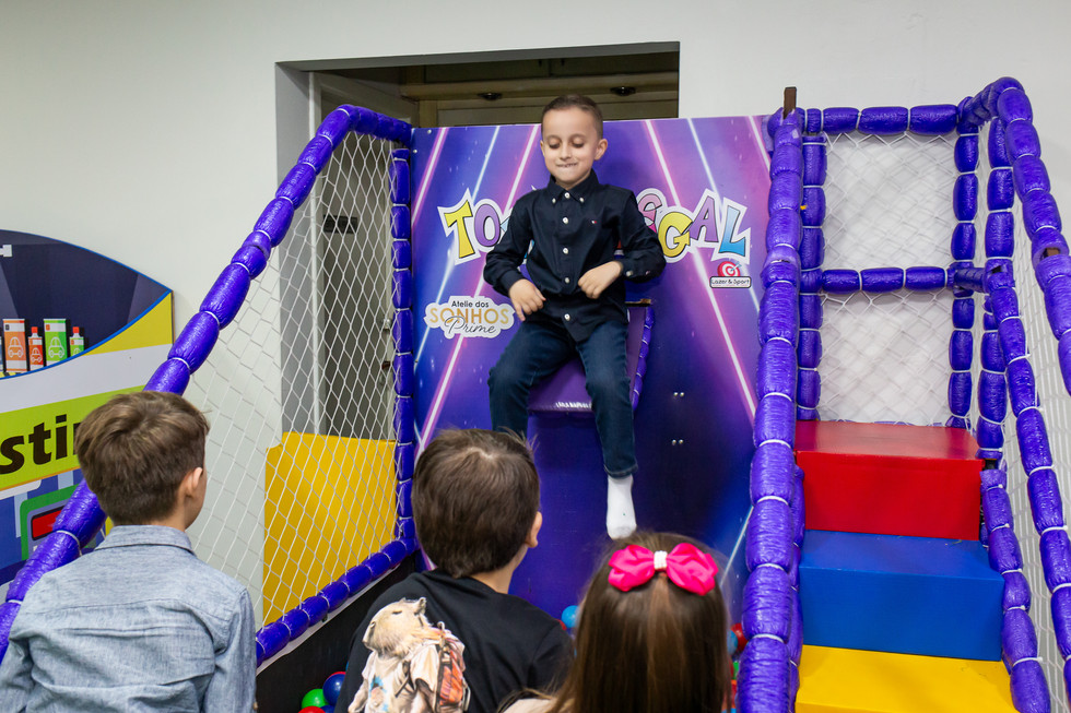 Heitor aproveitou cada segundo. Entre pulos na piscina de bolinhas e partidas no fliperama — seus cantinhos favoritos — ele e os amigos viveram uma noite de pura diversão. Risadas, correria e aquela alegria genuína que só a infância sabe oferecer.