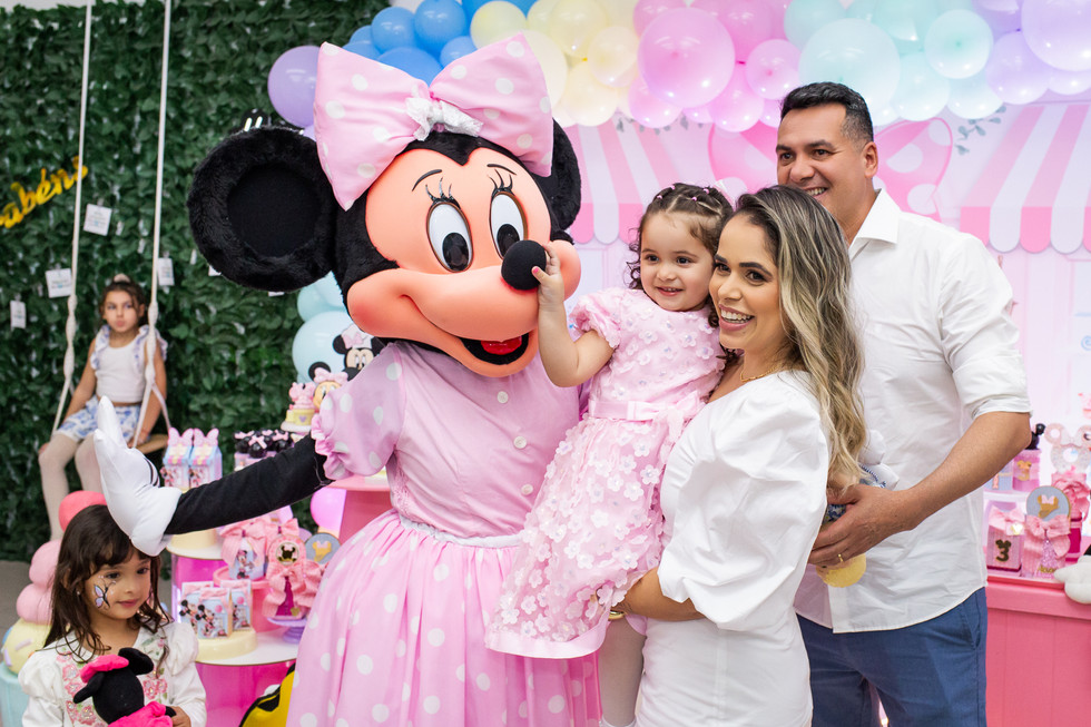 E como toda boa história tem um momento mágico, eis que surge a Minnie em pessoa, arrancando suspiros e abraços de adultos e crianças. Foi aquele tipo de surpresa que transforma uma festa em memória afetiva.