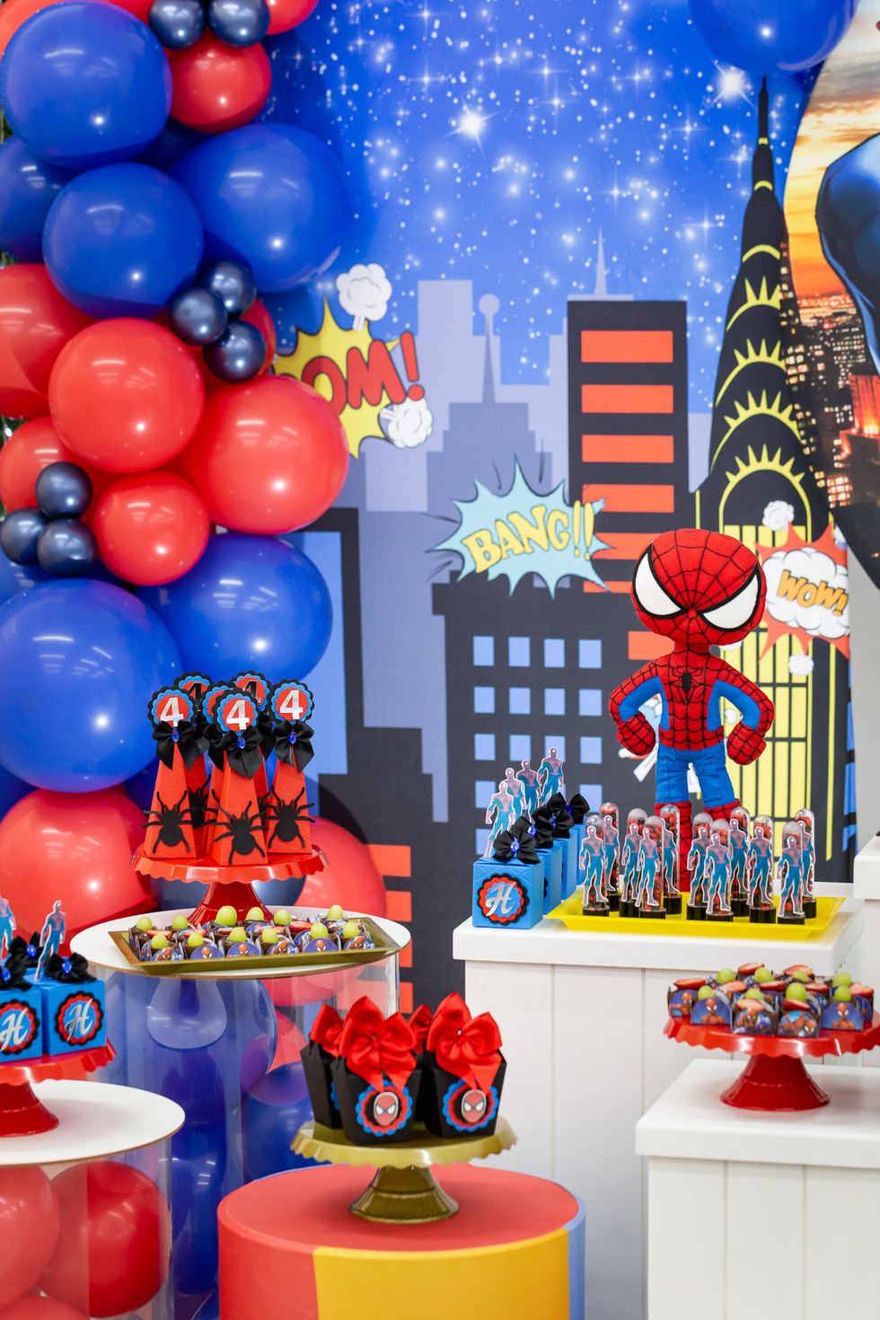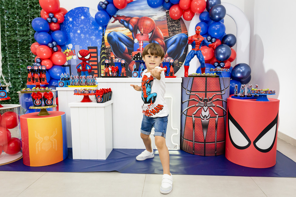 Sextouuuu! E vamos iniciar o fim de semana relembrando a festa do Henrique por aqui! Ele comemorou seus quarto aniversário no sábado passado com uma linda festa na Faz de Conta Casa de Festas, com uma decoração maravilhosa no tema Homem Aranha. Uma tarde incrível com convidados queridos que vieram prestigiar essa linda celebração na vida dele.