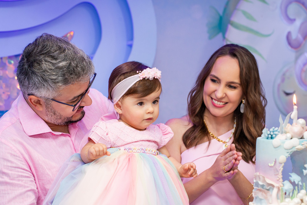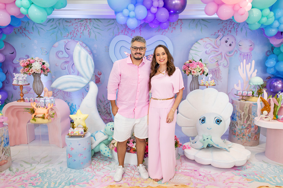 O tema escolhido foi Fundo do Mar, e a decoração assinada pela Raposo Festas trouxe toda a magia dos oceanos para o ambiente. Cada detalhe remetia ao universo marinho, com cores e elementos delicados que encantaram os convidados. Os doces modelados da Dany Sweets completaram a produção com muito sabor e beleza.