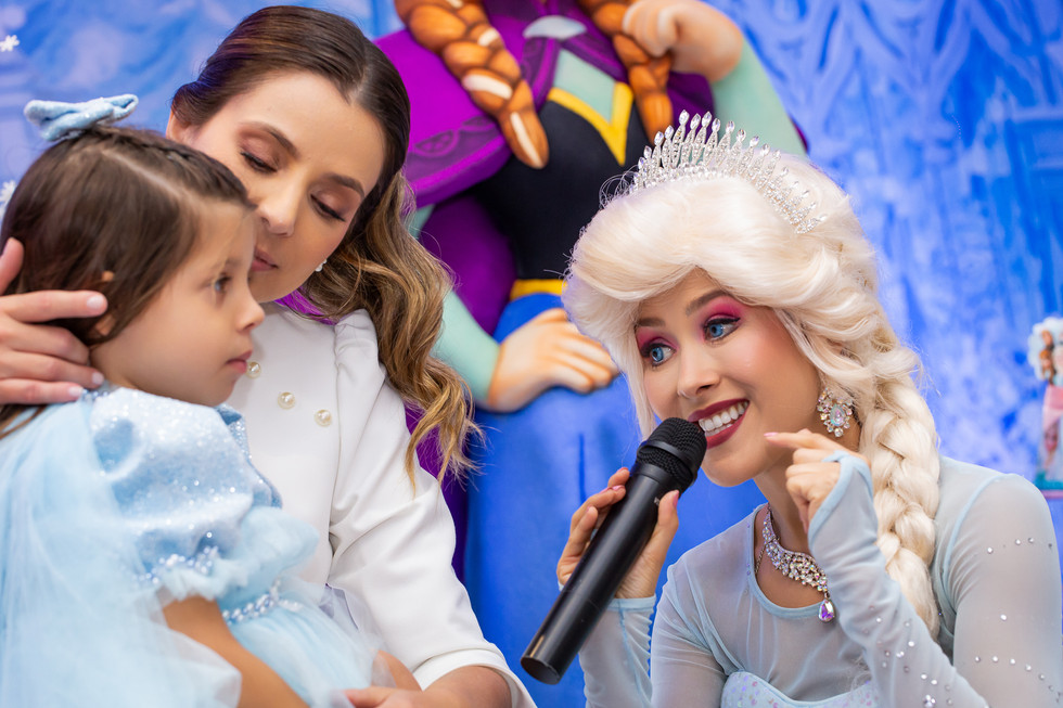 Para tornar tudo ainda mais especial, tivemos uma apresentação inesquecível da Elsa e da Ana, que cantaram os grandes sucessos de Frozen e encantaram adultos e crianças com sua energia e talento. Foi um verdadeiro espetáculo!