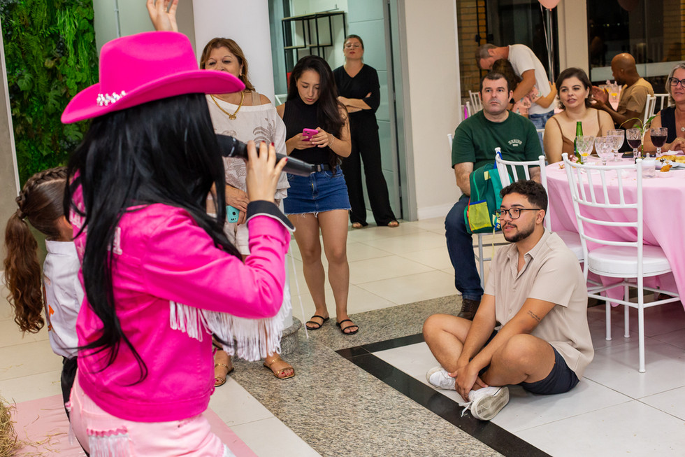 A aniversariante estava radiante! Se divertiu, brincou e cantou muito, vivendo cada instante intensamente. Um dos pontos altos da festa foi a apresentação de Flávia Abalém, interpretando Ana Castela, que fez todos vibrarem. Lívia ainda teve a oportunidade de cantar junto com Flávia e também com John Reis, momentos que marcaram a celebração com música e alegria.