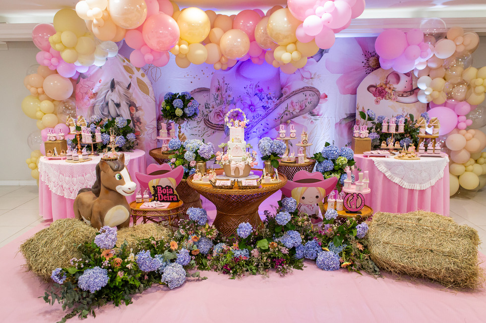 O tema escolhido foi Boiadeira, e a decoração incrível assinada por Larissa Raposo, da Raposo Festas, trouxe toda a atmosfera sertaneja para o espaço. Os personalizados de Aly Nogueira e os doces modelados da Dany Sweets completaram o cenário com muito charme e delicadeza.