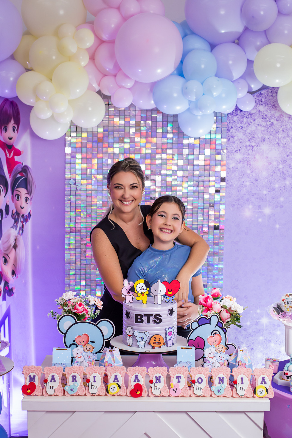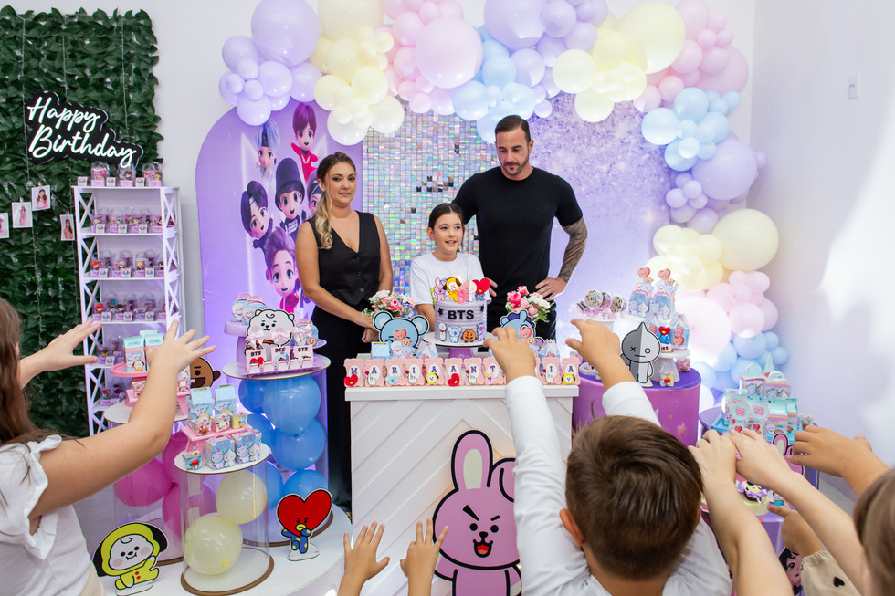 Hoje é dia da Maria Antônia brilhar por aqui! Segunda-feira ela comemorou 9 anos com uma linda festa na Faz de Conta Casa de Festas, com uma decoração maravilhosa no tema BTS. Ela preparou até uma coreografia com as amigas e uma com a dinda Nath para apresentar a todos os presentes! Simplesmente arrasaram!