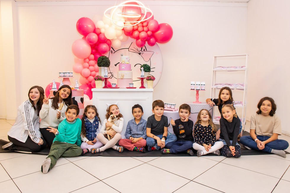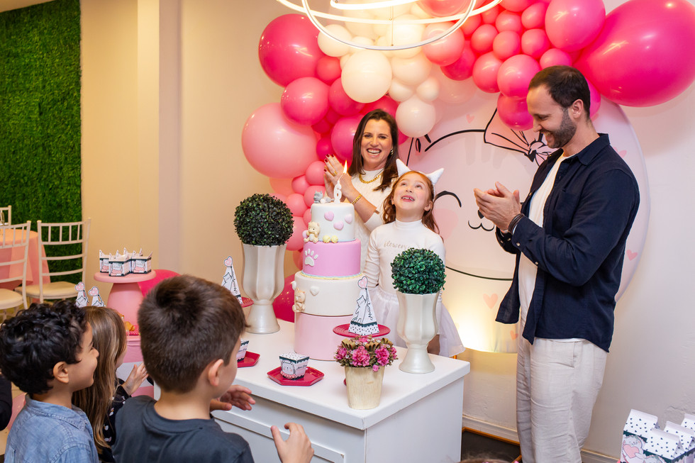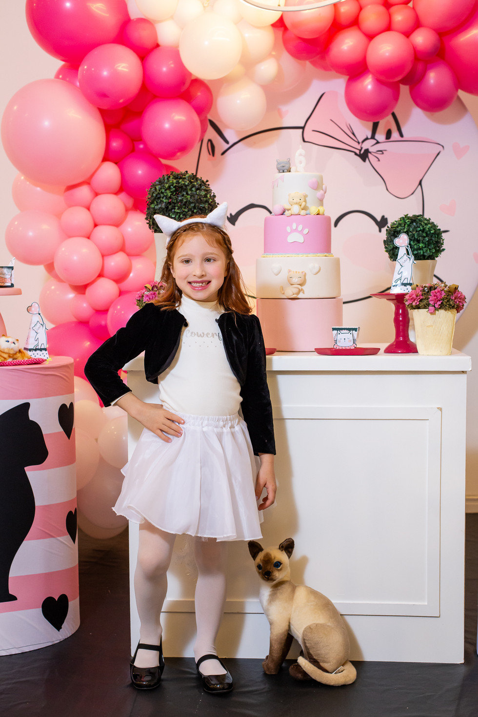 O local escolhido foi o sempre animado Brinca Mundi, cenário perfeito para diversão da garotada! O tema foi gatinhos e a Maria Clara reinou no meio do universo felino, vestida como uma gatinha, com um sorriso leve e sincero no rosto.