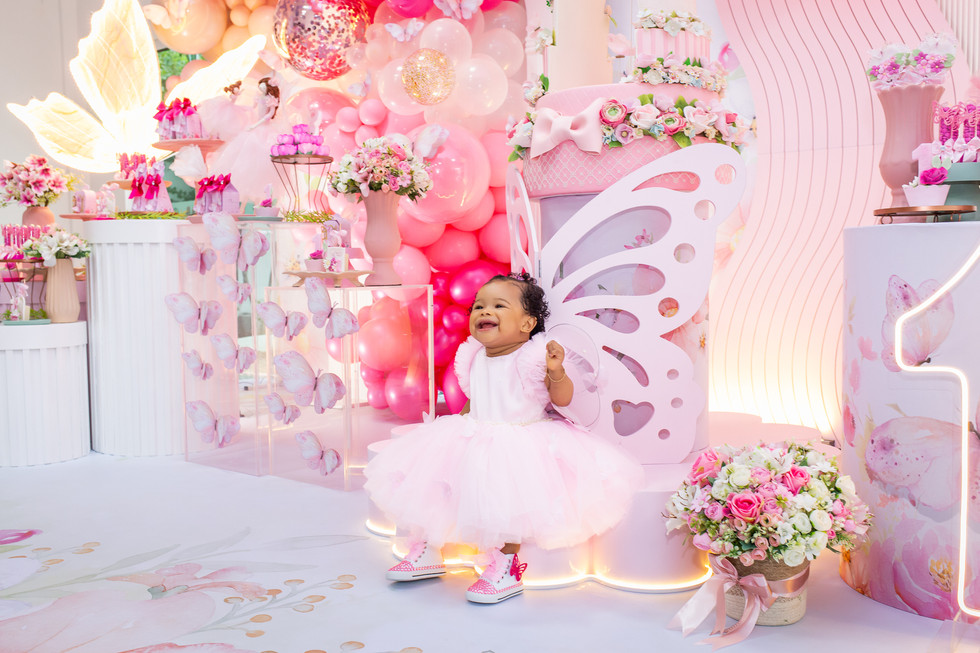 Maria Eduarda, a aniversariante, parecia uma princesa de verdade, mas com asas de fada. Uma estrela que brilhou intensamente em sua festa, tornando-a um dia inesquecível para todos.