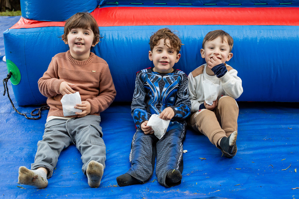 Vestido como o poderoso Thor, Matheus incorporou o papel de herói com entusiasmo! Entre os brinquedos infláveis e a energia das crianças, o dia foi puro movimento — como se cada brincadeira fosse uma nova missão a cumprir. Os risos ecoavam pelo gramado, e apesar do frio típico da estação, o calor humano era constante e acolhedor.