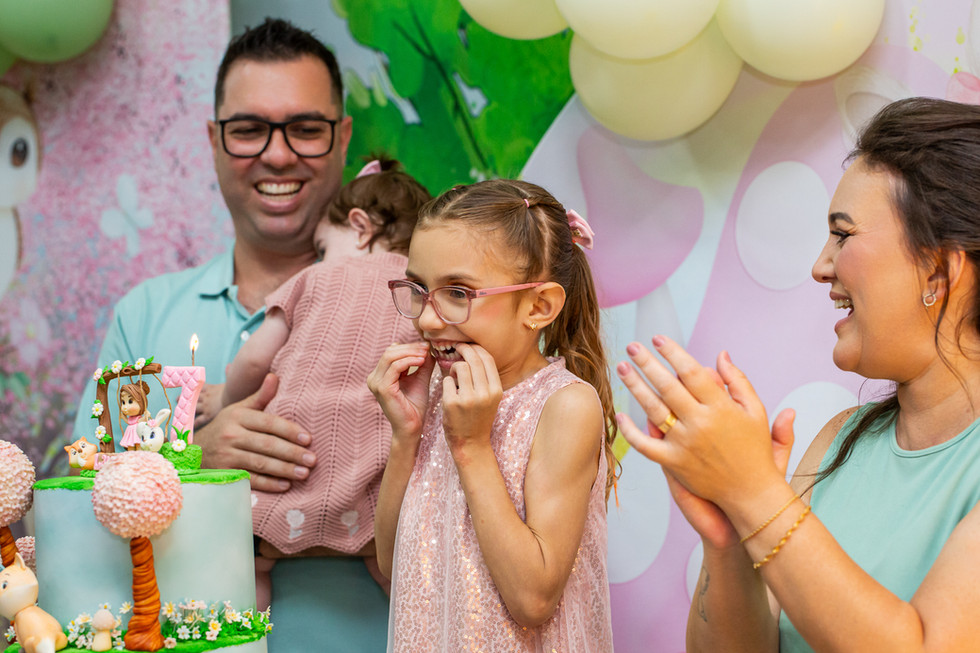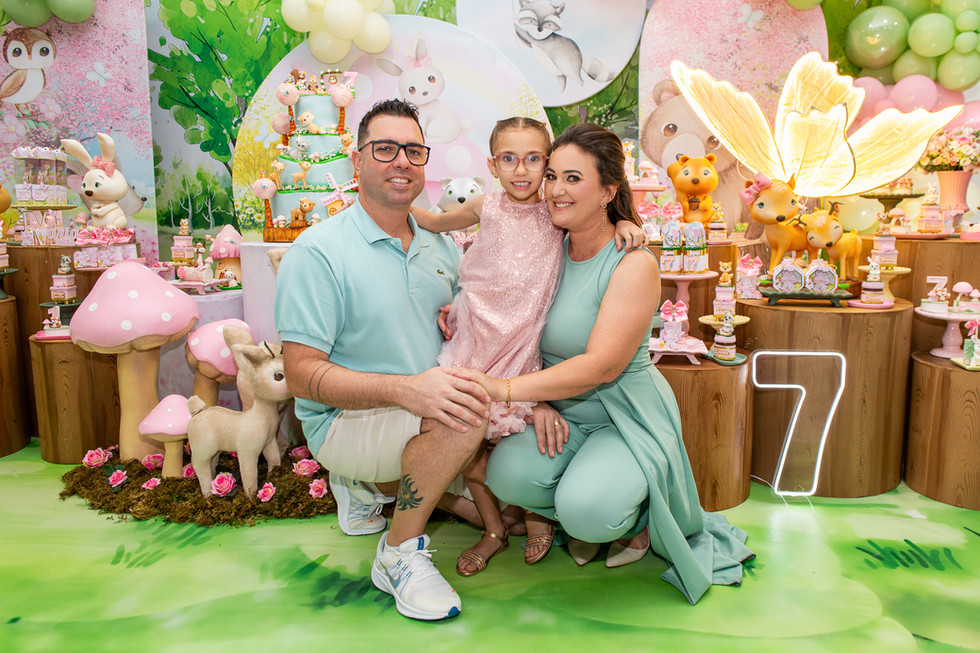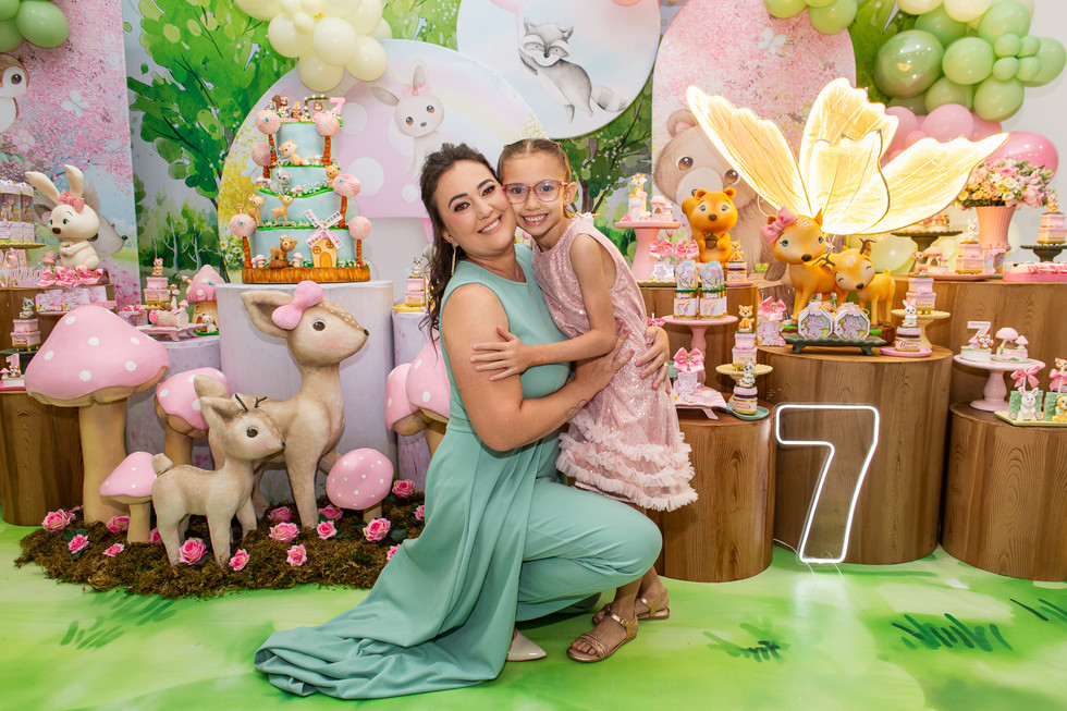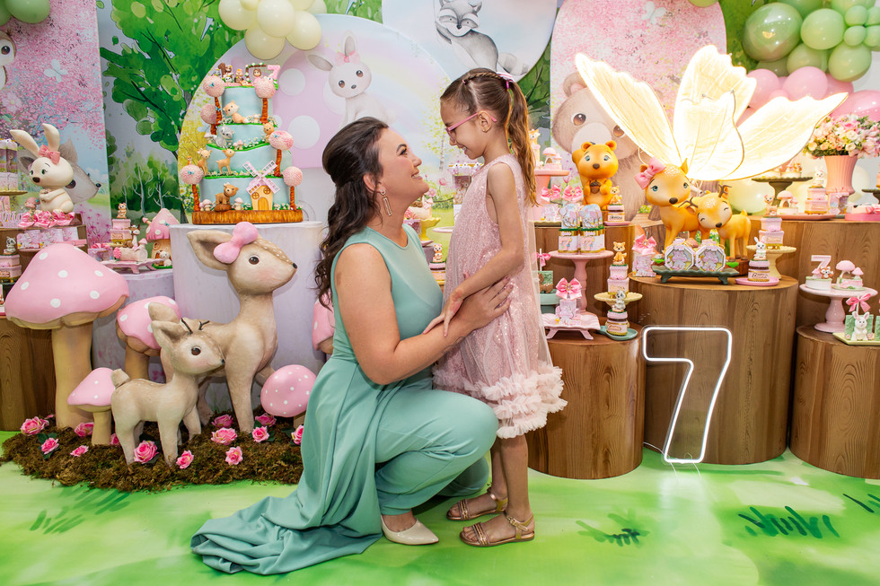 O tema escolhido, Bosque Encantado, trouxe delicadeza e fantasia para cada detalhe da festa. A decoração impecável, ficou por conta da Pyetra Festas, que transformou o espaço em um cenário de sonhos, onde natureza e imaginação se encontraram para dar vida a momentos inesquecíveis.