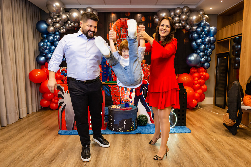 Hoje é dia do Miguel brilhar por aqui! No último sábado ele comemorou 3 anos de vida com uma festa linda com o tema Homem Aranha. A decoração estava incrível! O Miguel entrou no clima e no meio da festa se vestiu de Homem Aranha e fez todo mundo babar com suas poses de super-herói! A gente nota a diferença quando a criança escolhe o tema do próprio aniversário. Quando é algo que ele ama, o brilho no olhar é totalmente diferente. Foi de encher os olhos! A festa ainda contou com uma atração especial, a cereja do bolo, que foi a presença do próprio Homem Aranha, que empolgou tanto crianças quanto adultos com suas acrobacias. Ele animou os convidados e bateu fotos com todo que pediram. Uma noite incrível que ficará eternizada pelas nossas fotos. Com convidados queridos que vieram prestigiar essa linda celebração na vida do Miguel. E essa família é muito especial para gente! Estão com a gente desde o primeiro aninho do Miguel e já consideramos como nossos amigos. Então é sempre uma honra estarmos juntos todos os anos acompanhando o crescimento dessa criança linda.