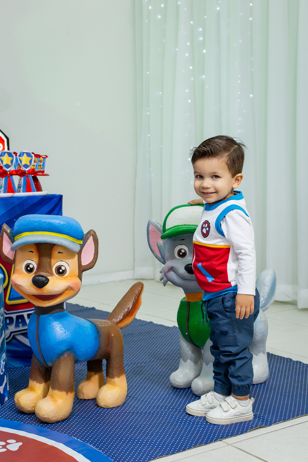 A decoração, assinada pela talentosa Larissa, da Raposo Festas, transportou todos para o universo animado da Patrulha, com detalhes que fizeram cada cantinho da festa se transformar em uma verdadeira missão de diversão.