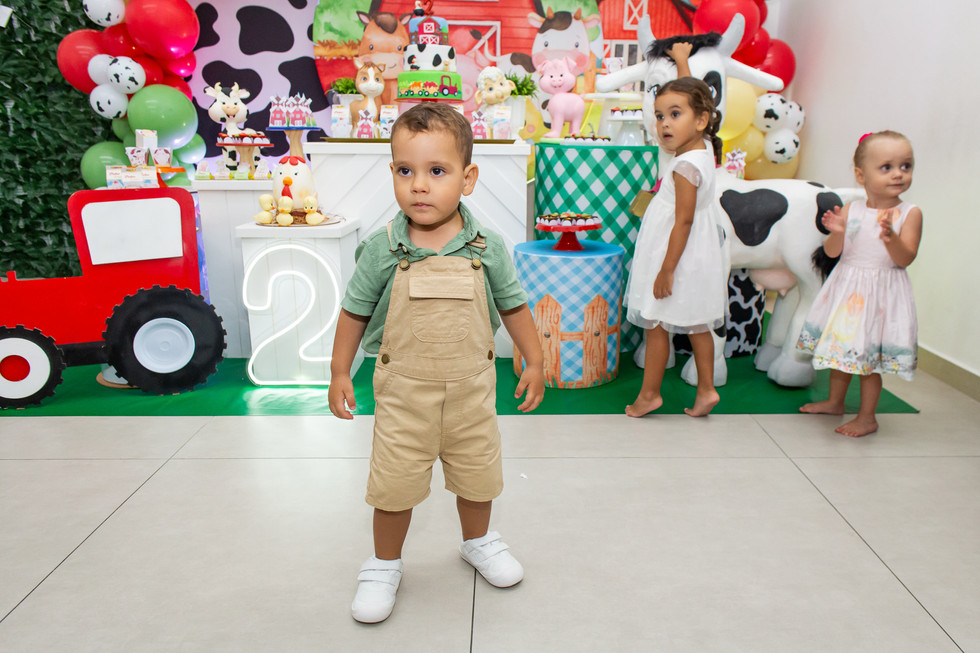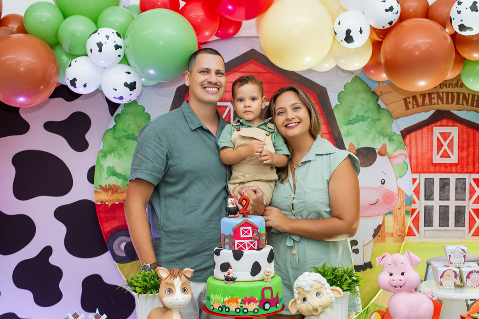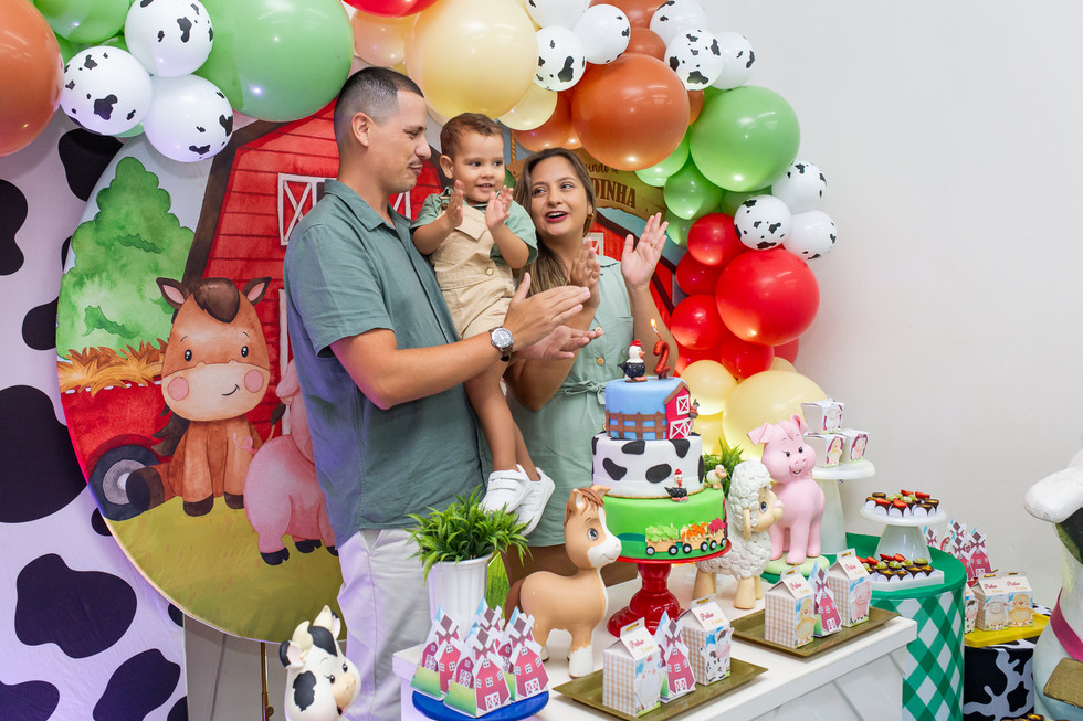 O tema escolhido para a festa foi Fazendinha, e a decoração trouxe todo o encanto do campo para dentro do espaço. Os detalhes cuidadosamente preparados criaram um ambiente acolhedor e cheio de charme, perfeito para celebrar essa data tão especial.