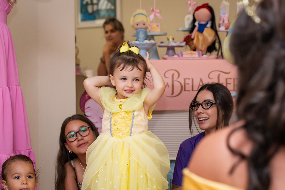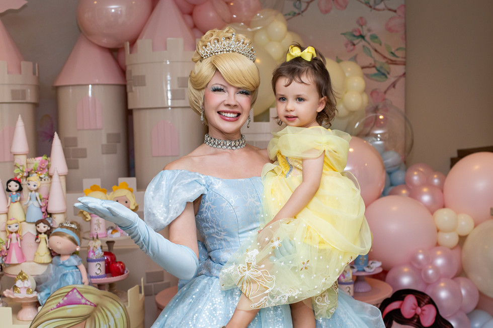 Um dos pontos altos da festa foi a apresentação especial das princesas Bela e Cinderela, que encantaram adultos e crianças com sua presença mágica e cheia de emoção.