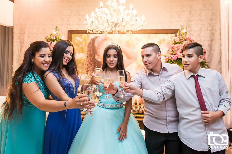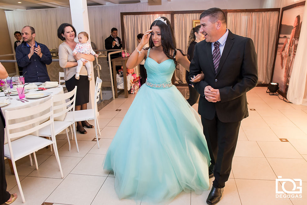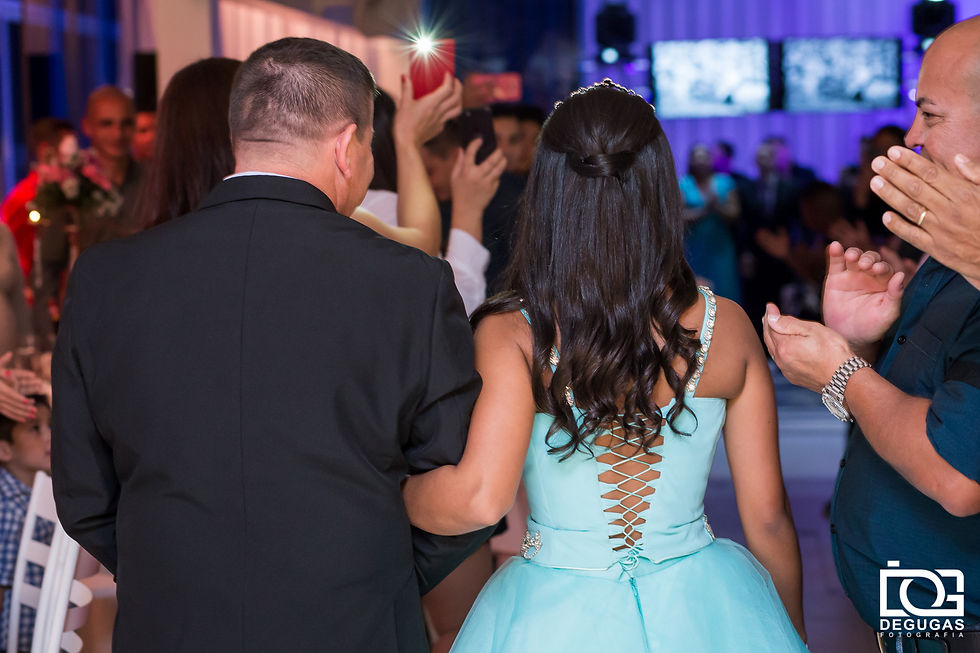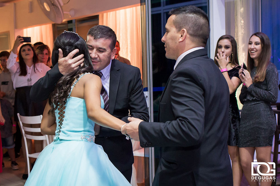 Hoje é dia da Thais brilhar no nosso blog! Está no ar o nosso post especial do Aniversário de 15 anos dela, realizado no dia 30 de junho de 2018 na ELASE, em Florianópolis. Mais do que proporcionar uma lembrança visual, nosso desejo como fotógrafos é que os sentimentos sejam revividos. A ansiedade estava reinando para que um dos dias mais felizes na vida da Thais, viesse à tona. E esse dia tão aguardado, chegou, passou e vai sempre deixar saudades. A Thais tem uma família linda e super querida, que veio do Uruguai para prestigiar esse momento mágico. Todos estavam super empolgados com esse tão sonhado dia e a festa foi como eles sonhavam! Podíamos sentir todo amor e carinho de sua família em cada gesto. O dia estava lindo, muita energia boa e ela estava rodeada dos amigos e familiares. E o nosso dia começou fazendo uma baguncinha no salão de beleza Ivanilda e Vanessa Salão e Estética. Um toque, um detalhe, uma gargalhada, muita ansiedade, arruma aqui, ajeita ali e lá estava ela, deslumbrante, pronta para enfim começar a desfrutar desse dia tão sonhado! Quando chegamos na ELASE, a decoração da ABC Decoração de Festas já abrilhantava o salão. Muitas atrações estavam por vir, com o pessoal do News'Bartenders, a Red Cabine, e os agitos do DJ Mendes. Tudo muito bem orquestrado pela cerimonial Ana Paula Garcia que conduziu o evento com maestria. A Thais viveu momentos especiais que não ficaram só por conta dela, a estrela da noite. Ela também recebeu muito carinho e lindas homenagens da família e dos amigos. E pense em uma família legal! Agora multiplique por 10! Sim, uma família querida, alegre e que sabe como receber as pessoas e deixar o ambiente mais feliz para realização de um sonho. A festa foi perfeita! Thais, Ivana, Fernando, Brisa e Tiago, adoramos estar com vocês. Enquanto todas as fotos da festa não ficam prontas, esperamos que curtam esse pequeno aperitivo! Agora, sem mais delongas, vamos relembrar como foi esse dia? Pessoal que não se viu nessa pequena prévia das fotos, não fique triste. Logo logo vamos entregar o DVD com todas as fotos para a Thais. Para quem ainda não viu a sessão pré 15 anos da Thais, é só clicar aqui. E se gostar das fotos, passa o link para frente, para que mais pessoas conheçam essa linda história. Ficha Técnica: Cerimonial: Ana Paula Garcia Fotografia: Degugas Fotografia Cinegrafista: Paulo Ribeiro Junior (equipe: Gabriel Egídio e Victor) Decoração/Produção: ABC Decoração de Festas Cabine de Fotos: Red Cabine / Kennedy Meyer e Aly Garcia Maquiagem e Cabelo: Ivanilda e Vanessa Salão e Estética DJ: Mendes / Biel Santos Bartenders: News'Bartenders Buffet: Juju Local: Elase